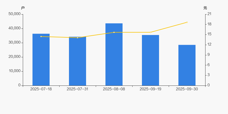 2025年7月18日至今,公司股东户数显著下降,区间跌幅为21.54%。2025年7月18日至2025年9月30日区间股价上涨29.02%。