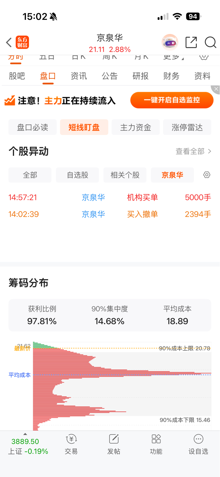 $京泉华(SZ002885)$ 尾盘集合竞价抢筹码,盘中小单拉大单出