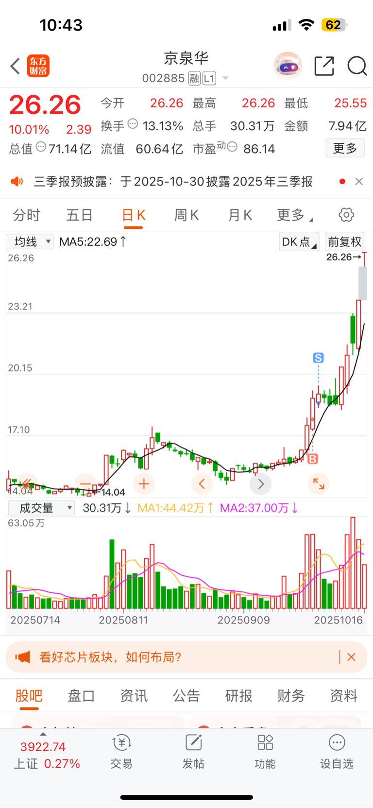 温馨提示: 1.根据《证券法》规定,禁止编造、传播虚假信息或者误导性信息,扰乱证券市场;2.用户在本社区发表的所有资料、言论等仅代表个人观点,与本网站立场无关,不对您构成任何投资建议。用户应基于自己的独立判断,自行决定证券投资并承担相应风险。《东方财富社区管理规定》