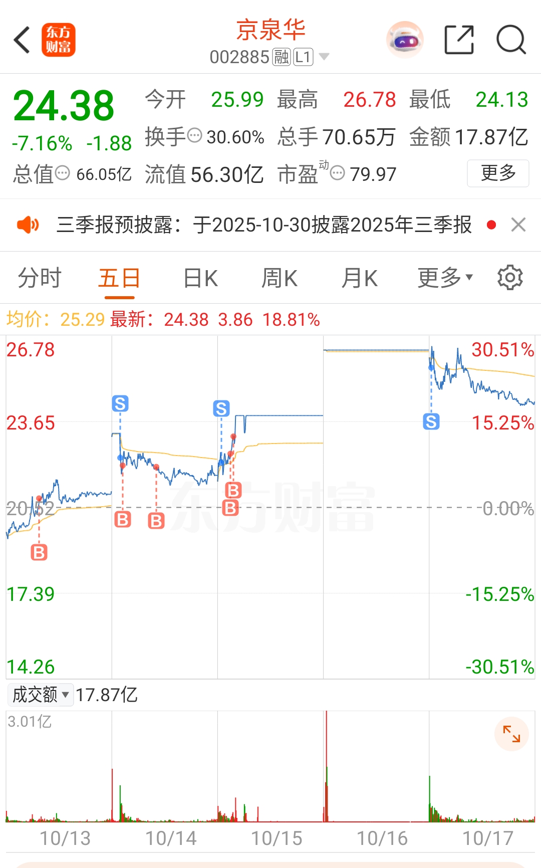 $京泉华(SZ002885)$
