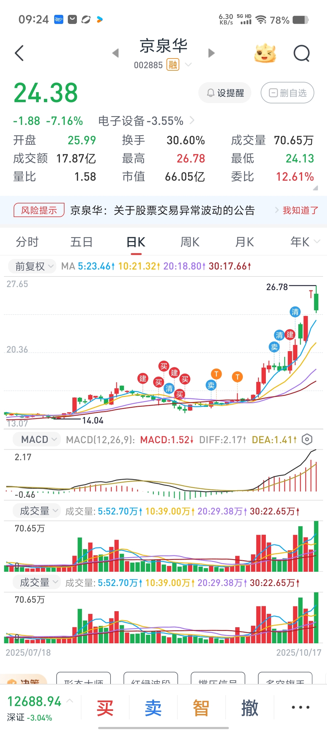 $京泉华(SZ002885)$ 我好痛啊,挣了14的本21就全卖了。我是个大冤种,我怕个嘚啊