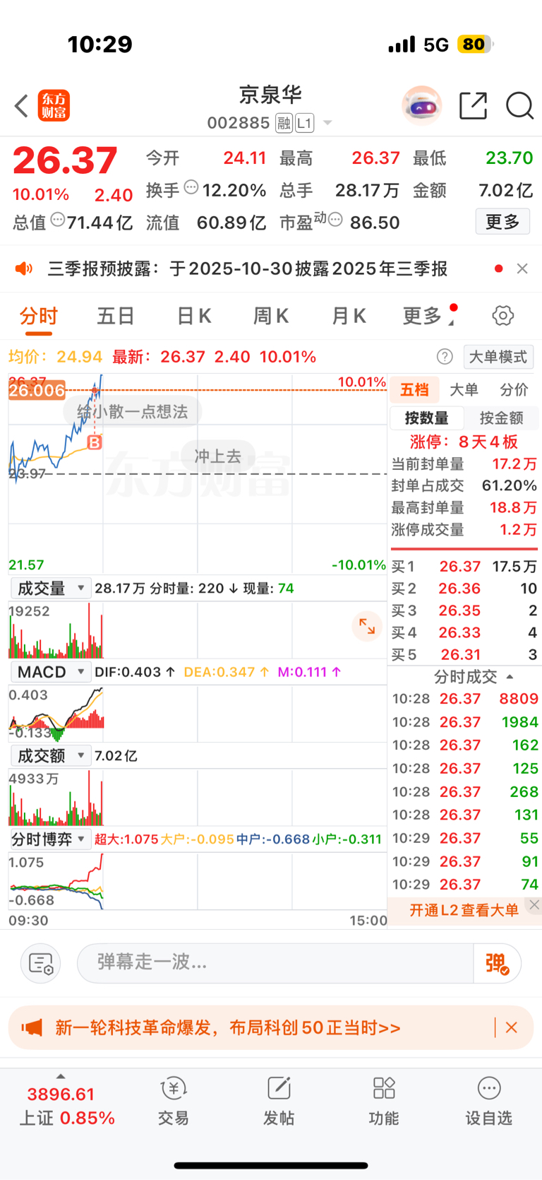 $京泉华(SZ002885)$ 见了个sb 客户耽误我赚钱…………买迟了,气死