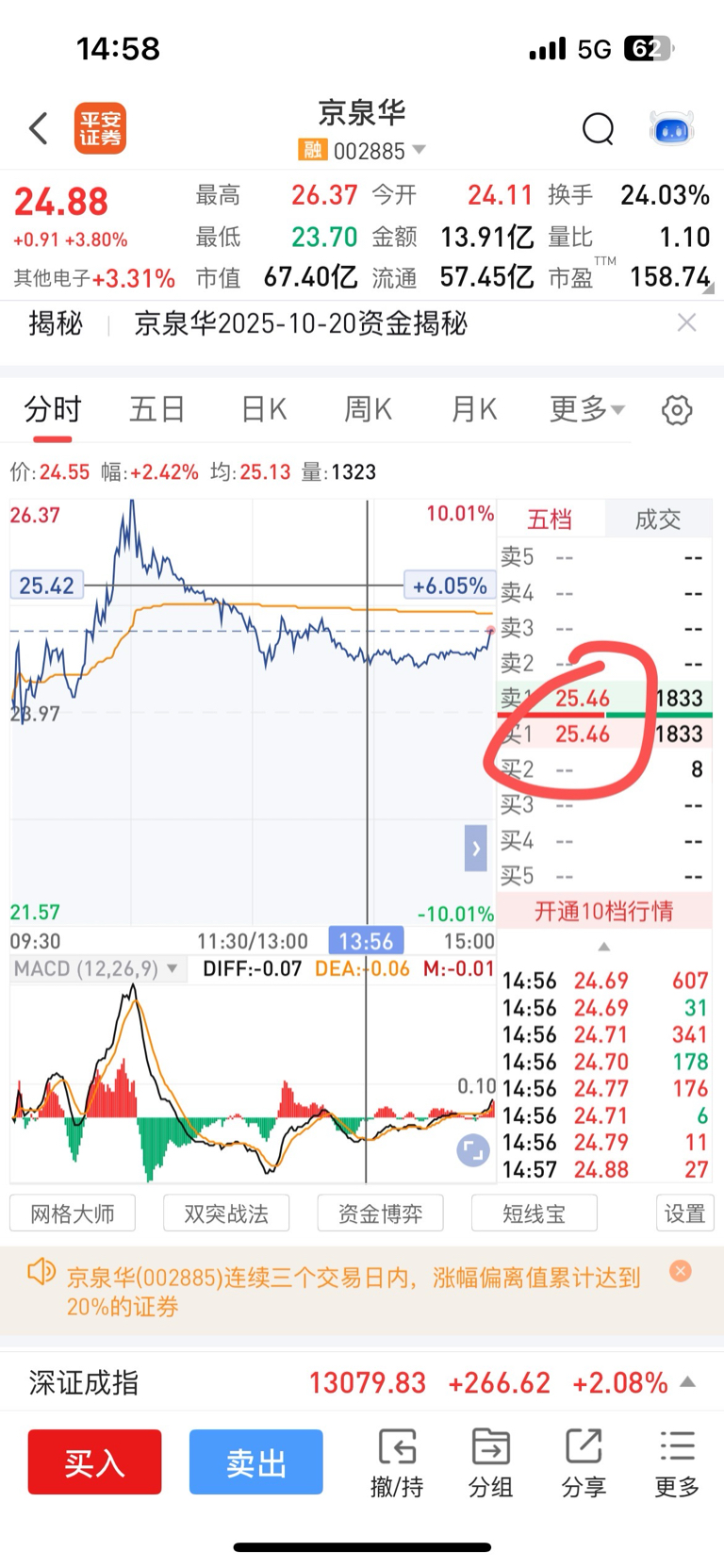 $京泉华(SZ002885)$ 还好砸下来了 不然明天就难说了