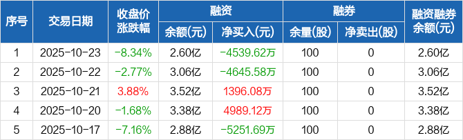 京泉华:融资净偿还4539.62万元,融资余额2.6亿元(10-23)