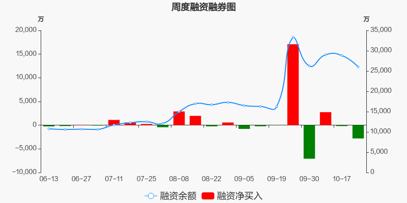 京泉华本周(2025/10/20-2025/10/24)累计跌幅达4.35%,截至10月24日最新股价报收23.32元。从增量上来看,10月20日至10月23日融资买入交易规模5.68亿元,融资偿还规模5.96亿元,期内融资净偿还2800万元。从存量上来看,截止10月26日,京泉华融资融券余额2.6亿元,其中融资余额规模2.6亿元,融券余额规模2219元。