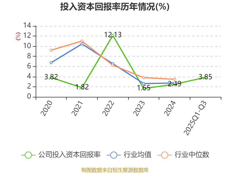 盈利能力方面, 2025年前三季度公司加权平均净资产收益率为5%,同比上升2.03个百分点。公司2025年前三季度投入资本回报率为3.85%,较上年同期上升1.41个百分点。