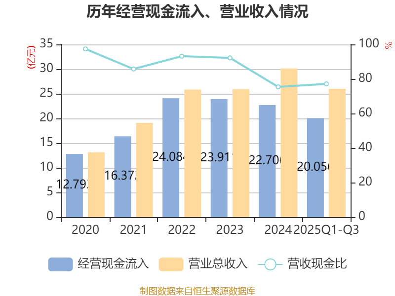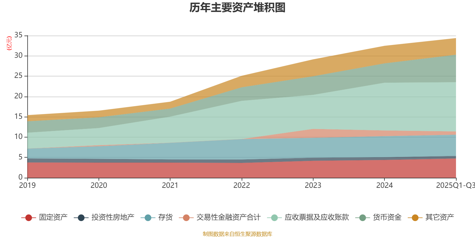 资产重大变化方面,截至2025年三季度末,公司货币资金较上年末增加42.1%,占公司总资产比重上升5.02个百分点;交易性金融资产合计较上年末减少42.86%,占公司总资产比重下降1.99个百分点;应收票据及应收账款较上年末增加3.16%,占公司总资产比重下降0.93个百分点;存货较上年末增加0.75%,占公司总资产比重下降0.77个百分点。
