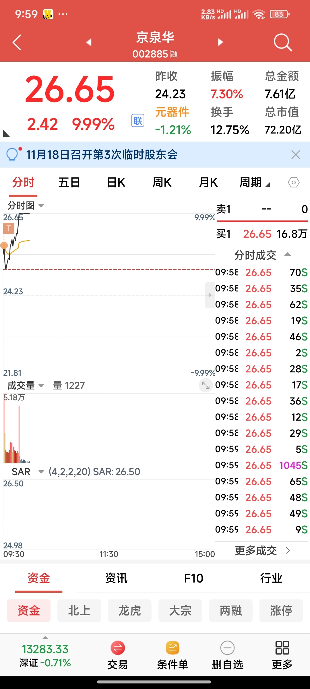 $京泉华(SZ002885)$ 开盘秒T26.12卖的,25.58买回来了,买早了点,结果是好的