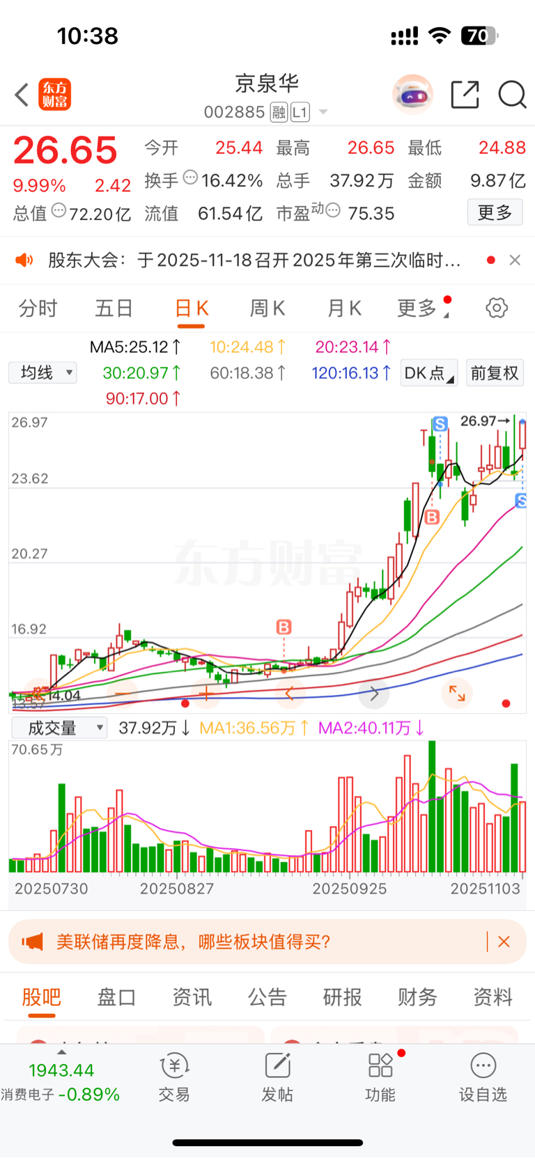 $京泉华(SZ002885)$ 留下的发财 先走了