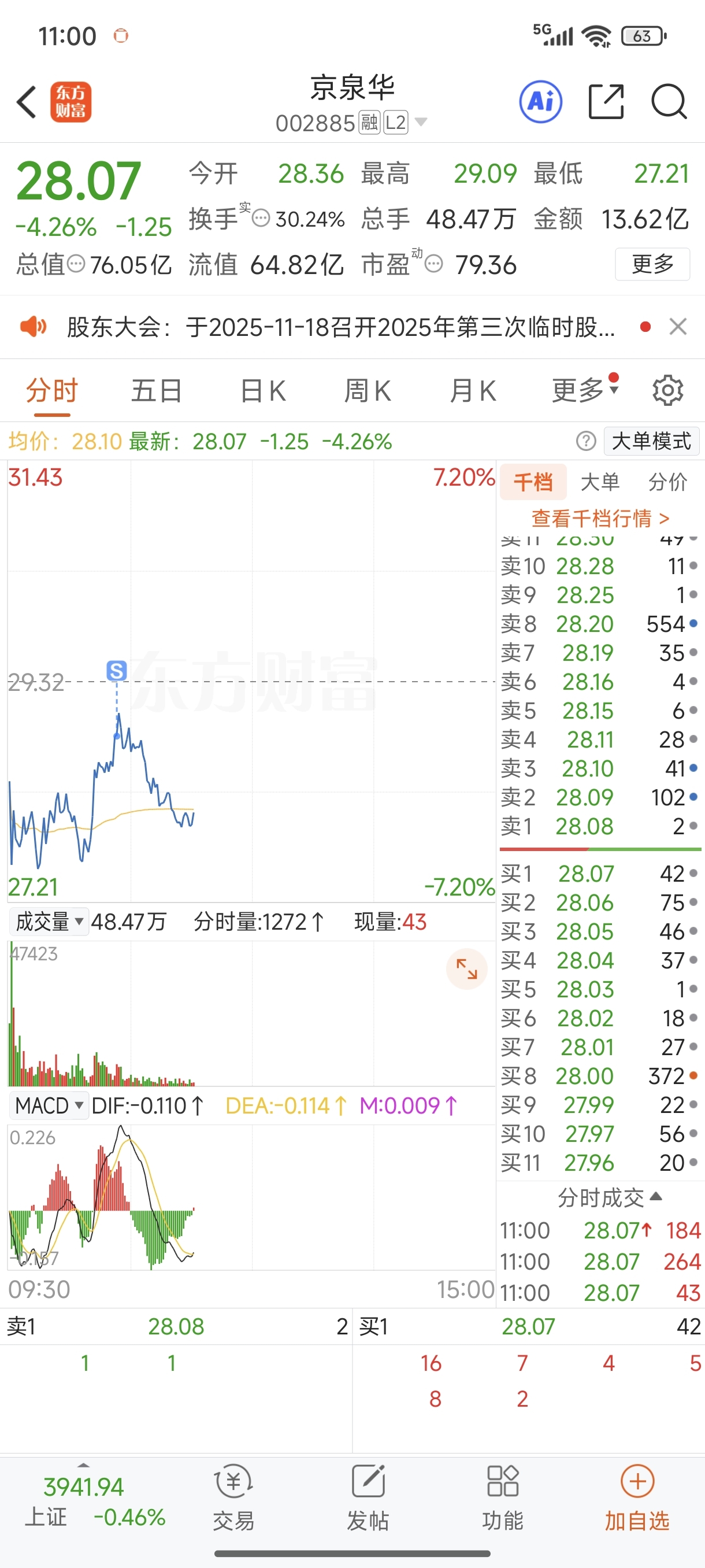 $京泉华(SZ002885)$ 可惜了,摩恩也没带起你飘红,真是希望你转强干掉老空比