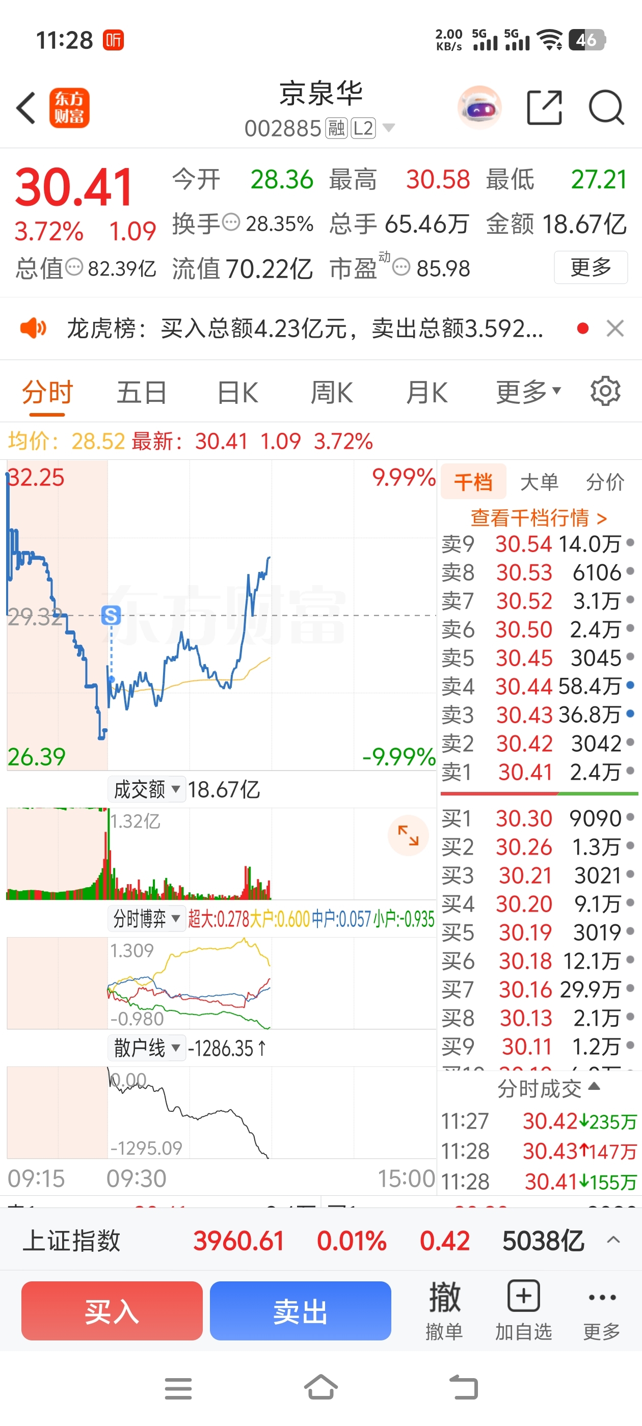 $京泉华(SZ002885)$ 板洗出去了