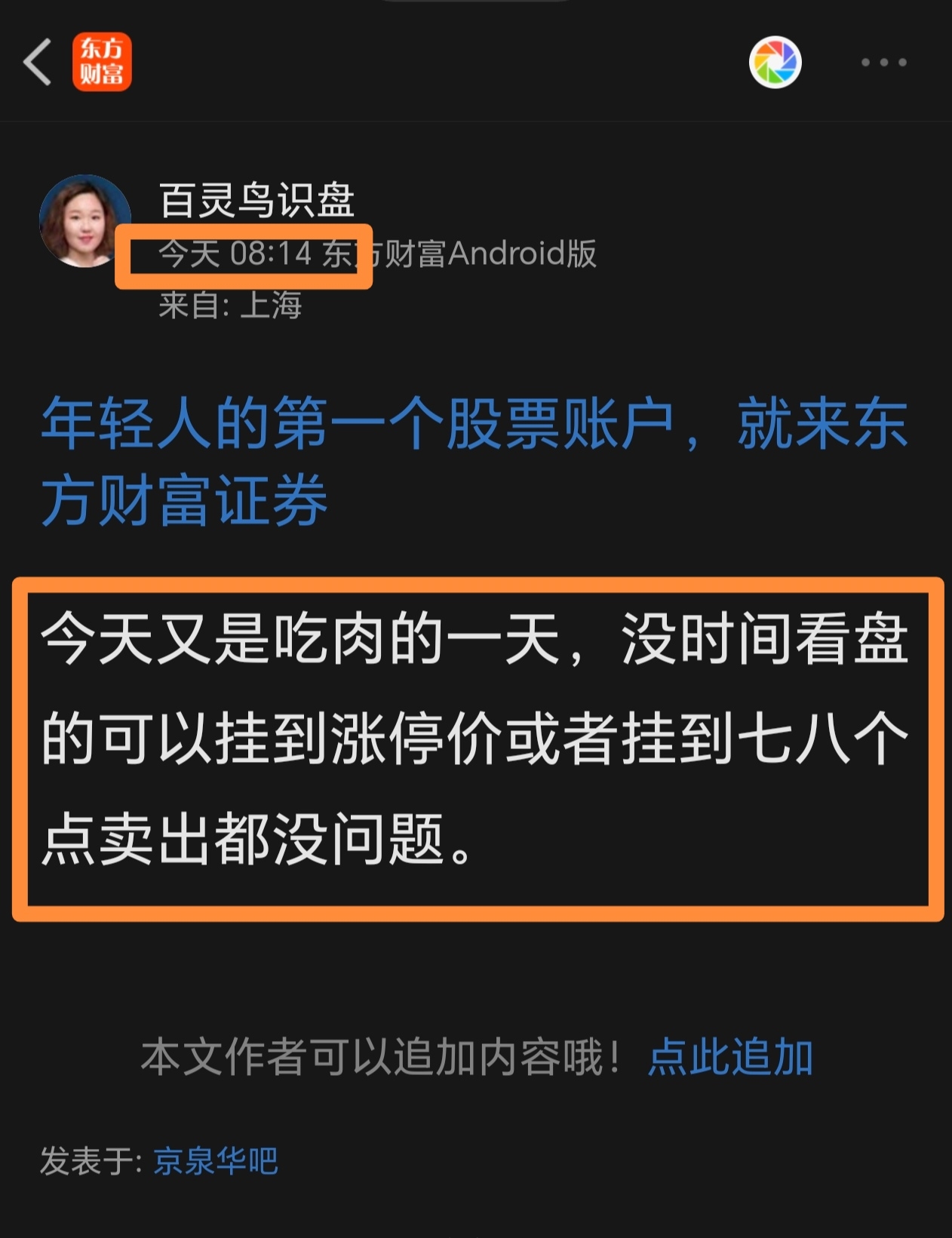 温馨提示: 1.根据《证券法》规定,禁止编造、传播虚假信息或者误导性信息,扰乱证券市场;2.用户在本社区发表的所有资料、言论等仅代表个人观点,与本网站立场无关,不对您构成任何投资建议。用户应基于自己的独立判断,自行决定证券投资并承担相应风险。《东方财富社区管理规定》