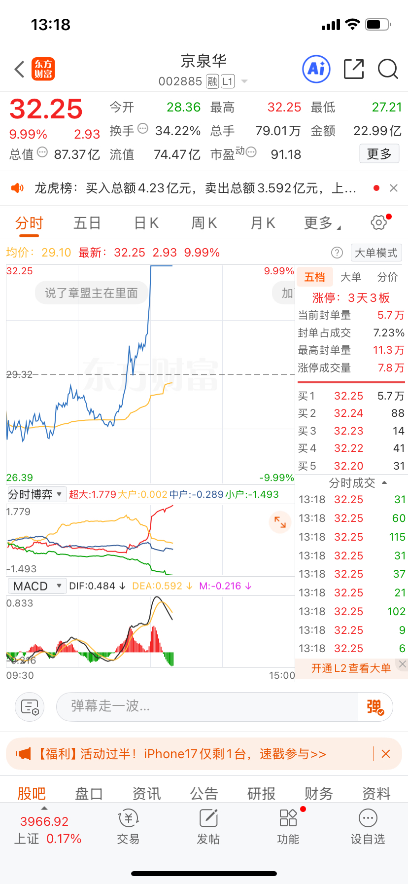 $京泉华(SZ002885)$ 早上水下建仓,爽