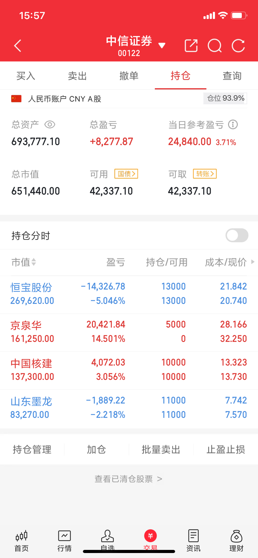 今日持仓: 山东墨龙 恒宝股份 $中国核建(SH601611)$
