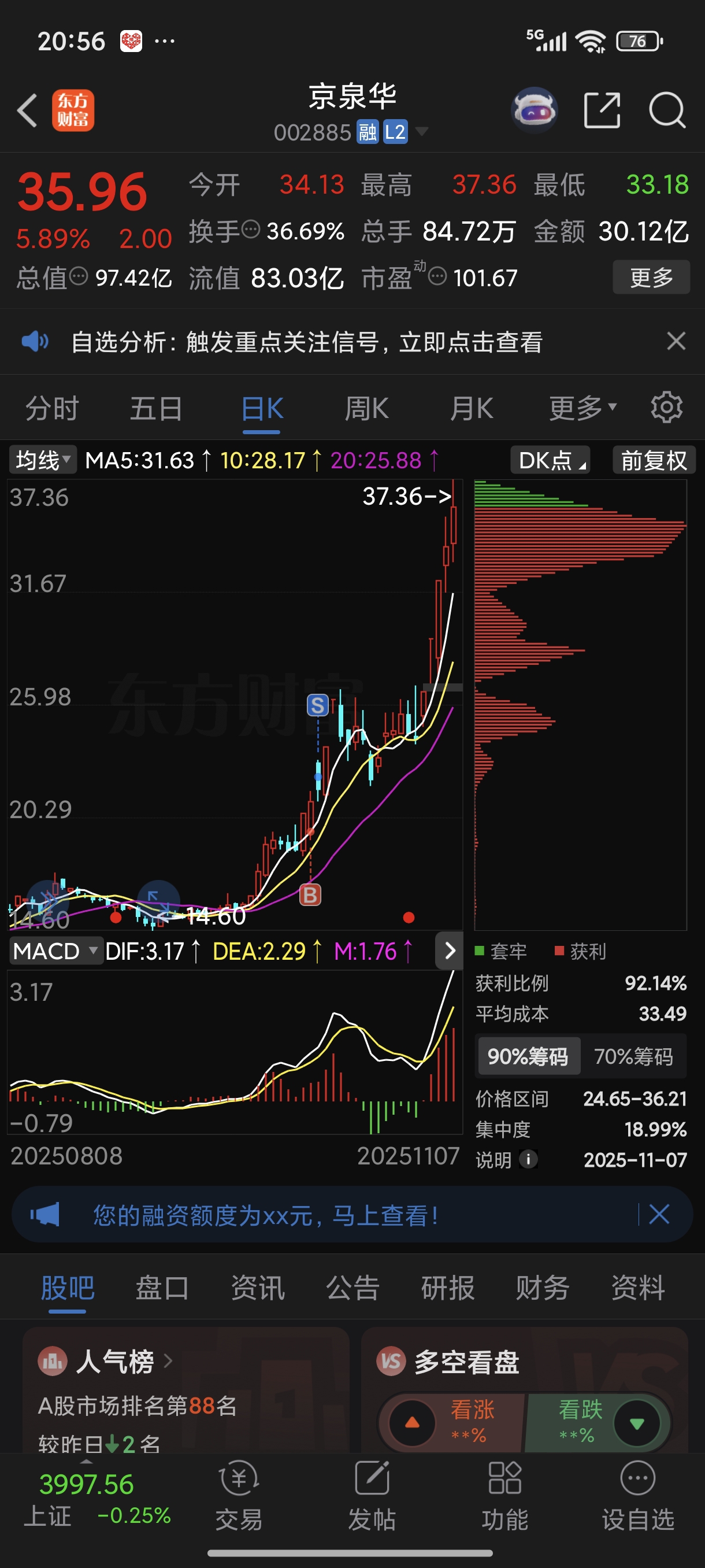 $京泉华(SZ002885)$ 马的不是人干的事刚买发减持公告给吓跑了