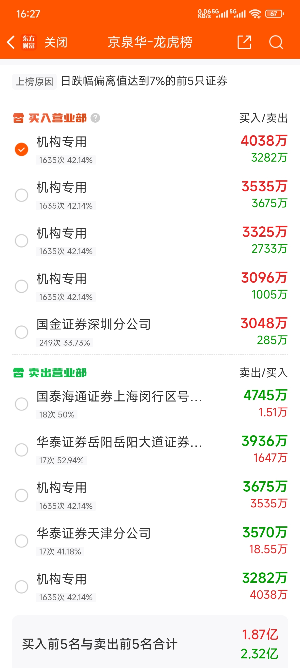 $京泉华(SZ002885)$ 龙虎榜都是机构在买,是好是坏啊?
