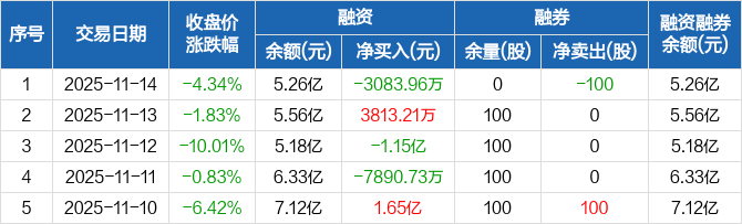 京泉华:融资净偿还3083.96万元,融资余额5.26亿元(11-14)