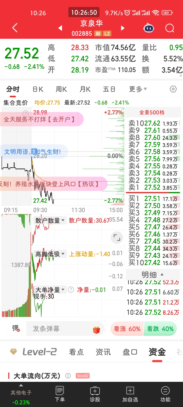 $京泉华(SZ002885)$ 不及预期,竞价就跑
