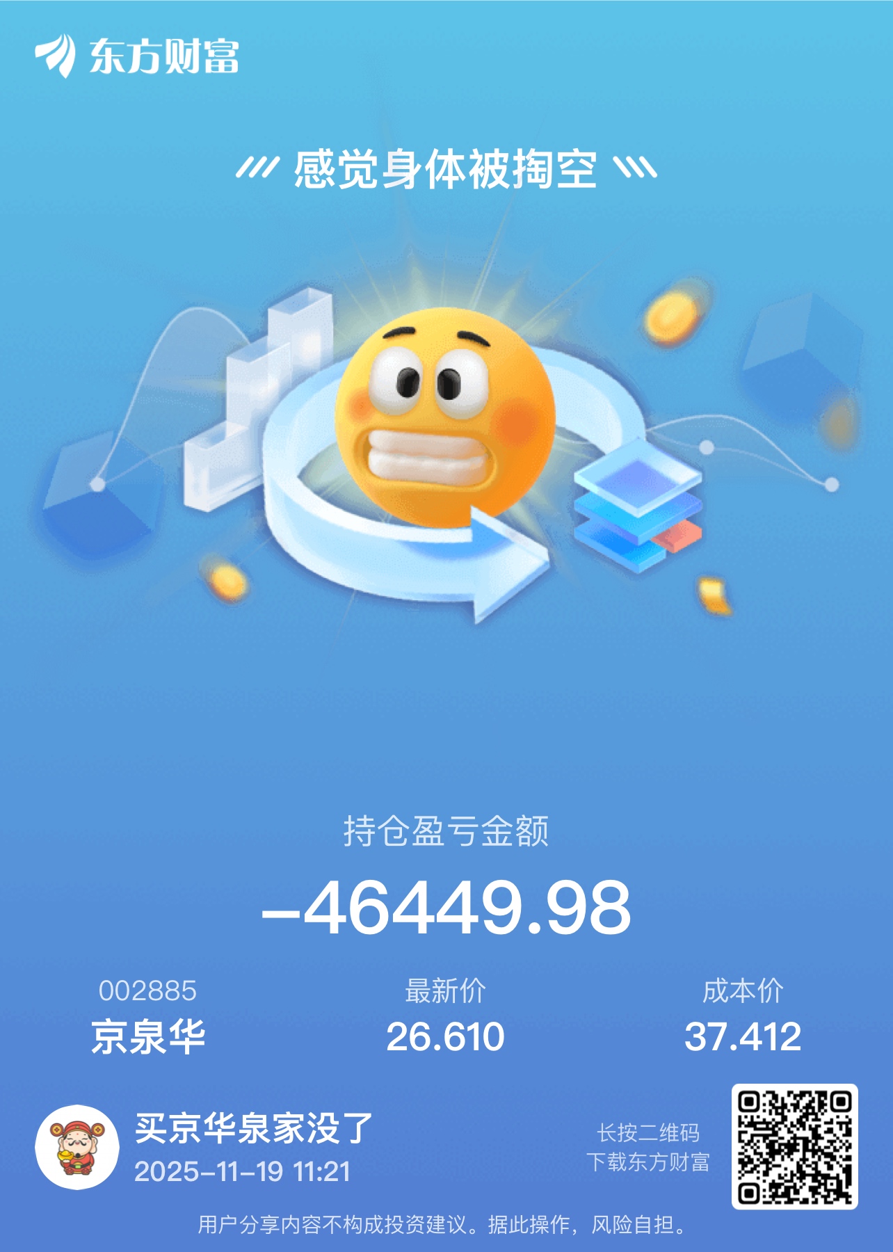 温馨提示: 1.根据《证券法》规定,禁止编造、传播虚假信息或者误导性信息,扰乱证券市场;2.用户在本社区发表的所有资料、言论等仅代表个人观点,与本网站立场无关,不对您构成任何投资建议。用户应基于自己的独立判断,自行决定证券投资并承担相应风险。《东方财富社区管理规定》