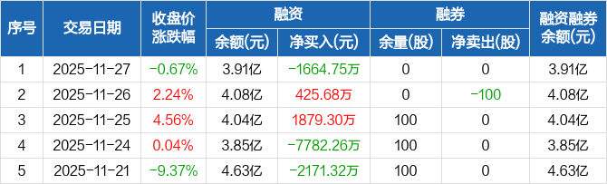 京泉华:融资净偿还1664.75万元,融资余额3.91亿元(11-27)