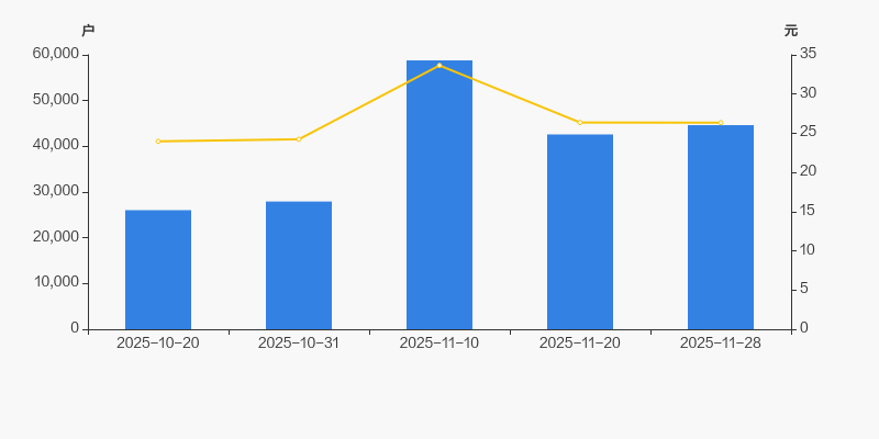 2025年10月20日至今,公司股东户数显著大幅增长,区间涨幅达71.40%。2025年10月20日至2025年11月28日区间股价上涨9.93%。