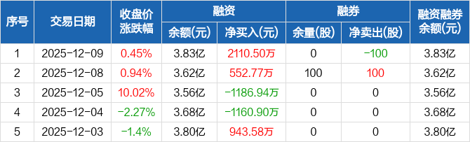 京泉华:融资净买入2110.5万元,融资余额3.83亿元(12-09)
