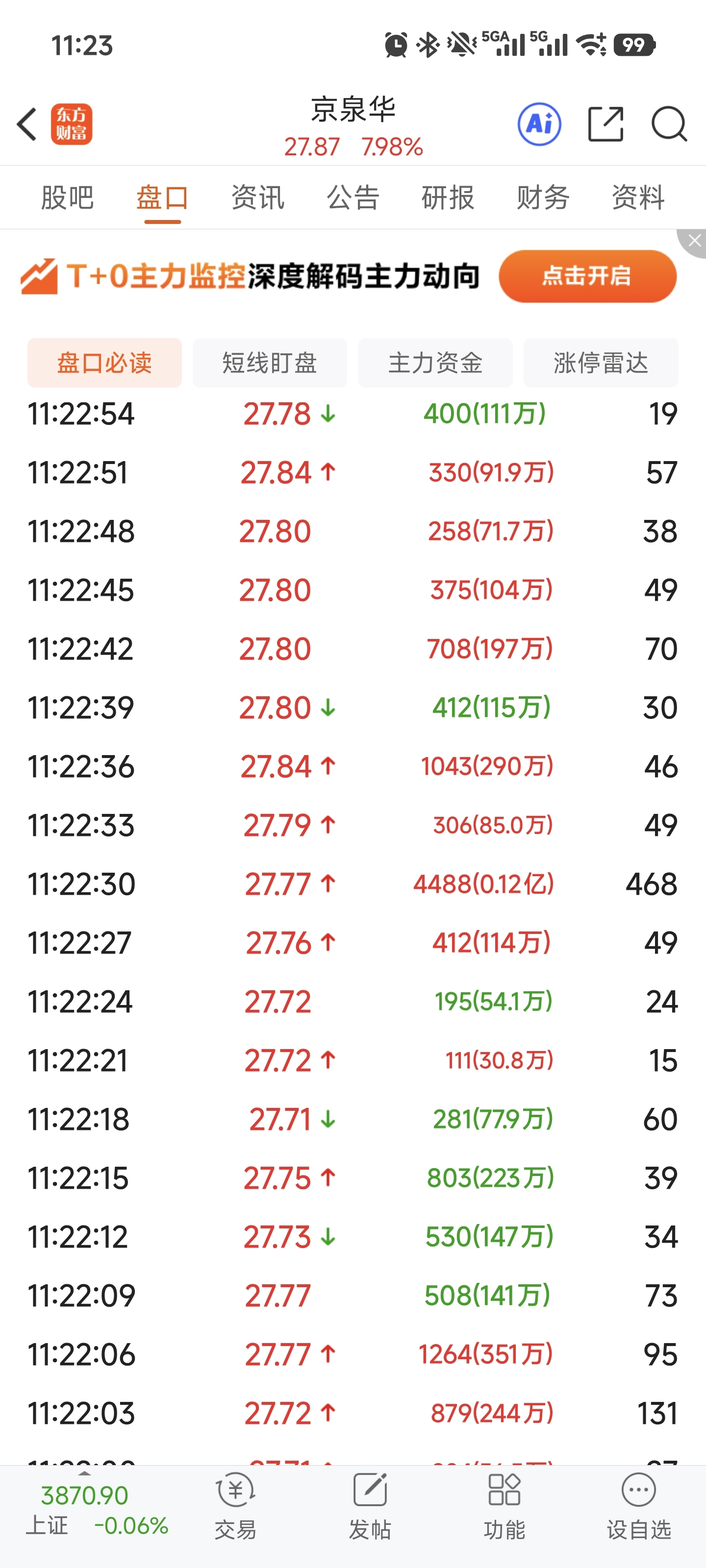 $京泉华(SZ002885)$ 一千多万,看来有大哥进来了