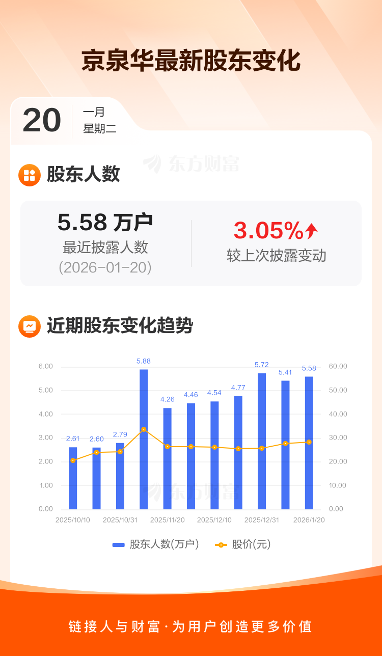 京泉华:截至1月20日最新股东户数5.58万户,较上期增加3.05%