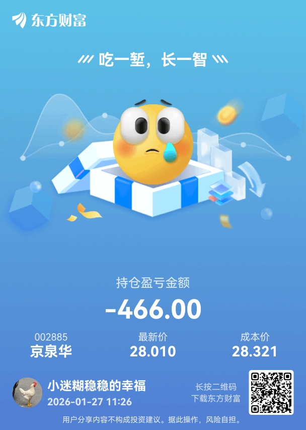 温馨提示: 1.根据《证券法》规定,禁止编造、传播虚假信息或者误导性信息,扰乱证券市场;2.用户在本社区发表的所有资料、言论等仅代表个人观点,与本网站立场无关,不对您构成任何投资建议。用户应基于自己的独立判断,自行决定证券投资并承担相应风险。《东方财富社区管理规定》