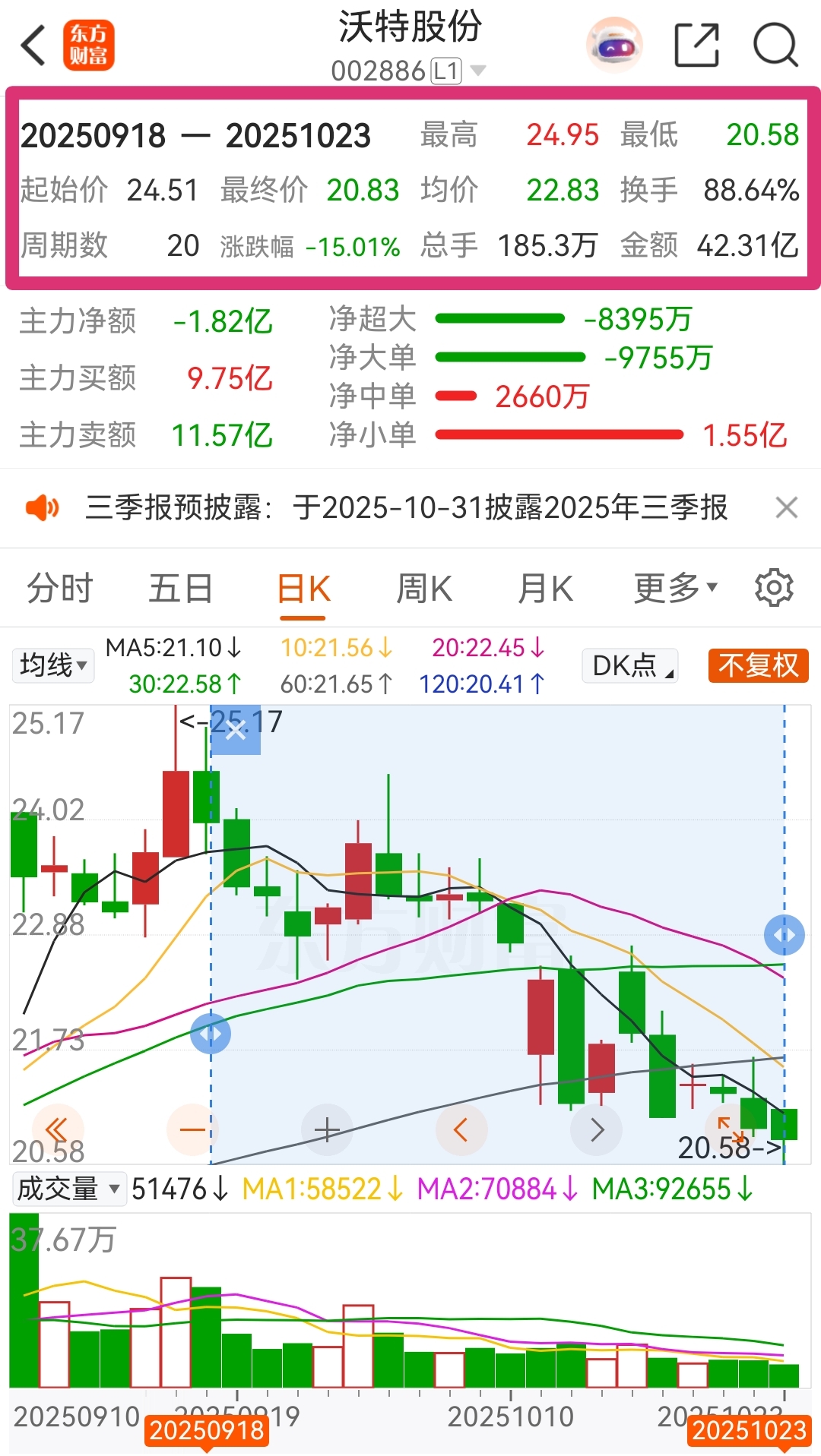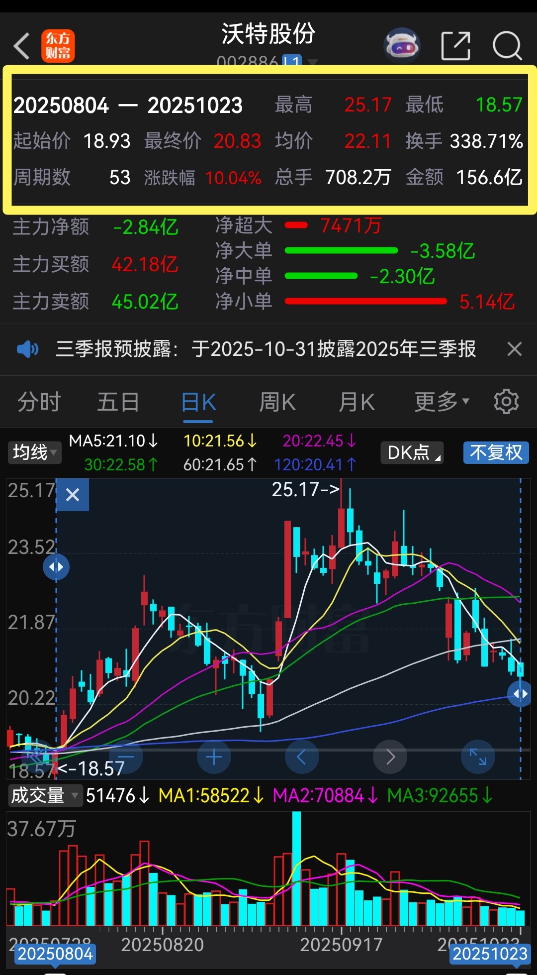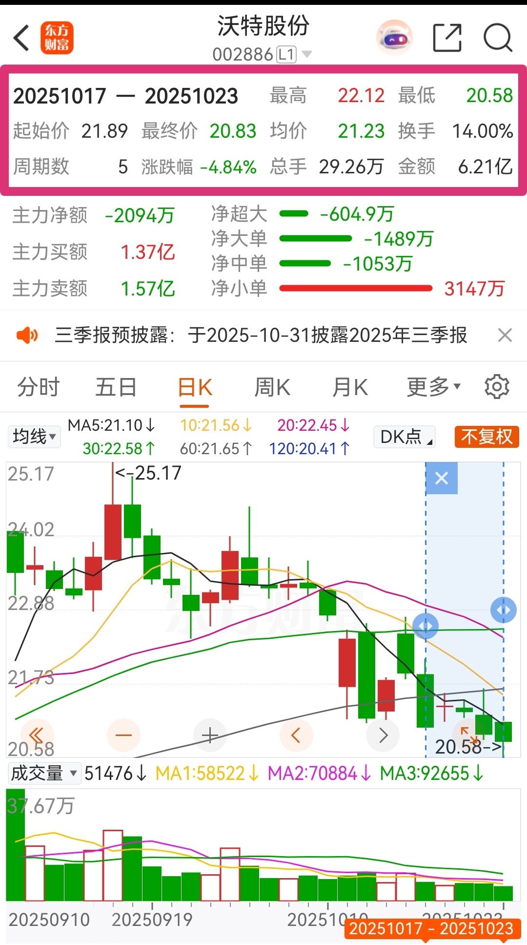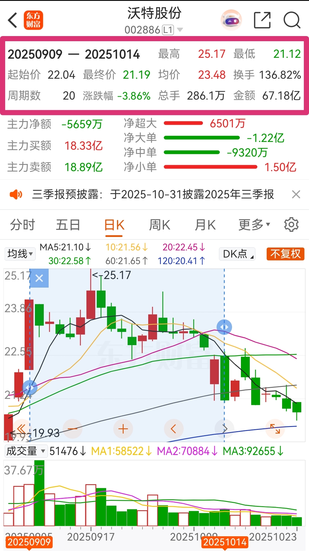 $沃特股份(SZ002886)$ 别在那里空谈误了自己的事儿!先弄醒割下面四幅各区间实际交易,所成交的成本均价和成交量换手!啥子破20元!摸19元!全部都不现实,首先看短期反弹收复5日均价(线)21.23元区域,再看10日均价(线)21.71元!中期看有无可能?去攻击20日均价(线)22.83元区域!老鲨鱼的戏言不可全信哈!