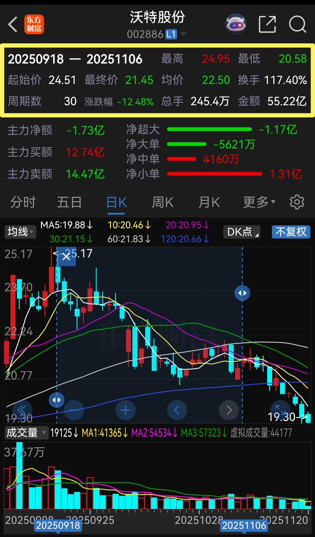 $沃特股份(SZ002886)$ 沃特今天最低价19.30元再次击穿BOLL线下轨,昨天收盘价19.50元,今天此刻成交均价为19.48元,沪深两市的金典战例!基本面,财务报表没有什么大问题!成交量换手充分,远低于区间交易的持股成本价均价,当股价击穿布林线下轨之时是载难逢捡钱的大好机会!屡试不爽拭目以待!