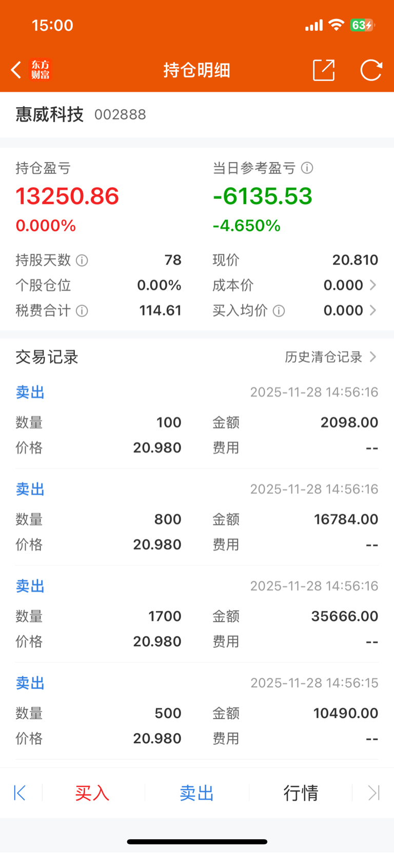 $惠威科技(SZ002888)$ 这次彻底清仓了,拉尾盘我惹不起你,别的票都在赚就你亏我。