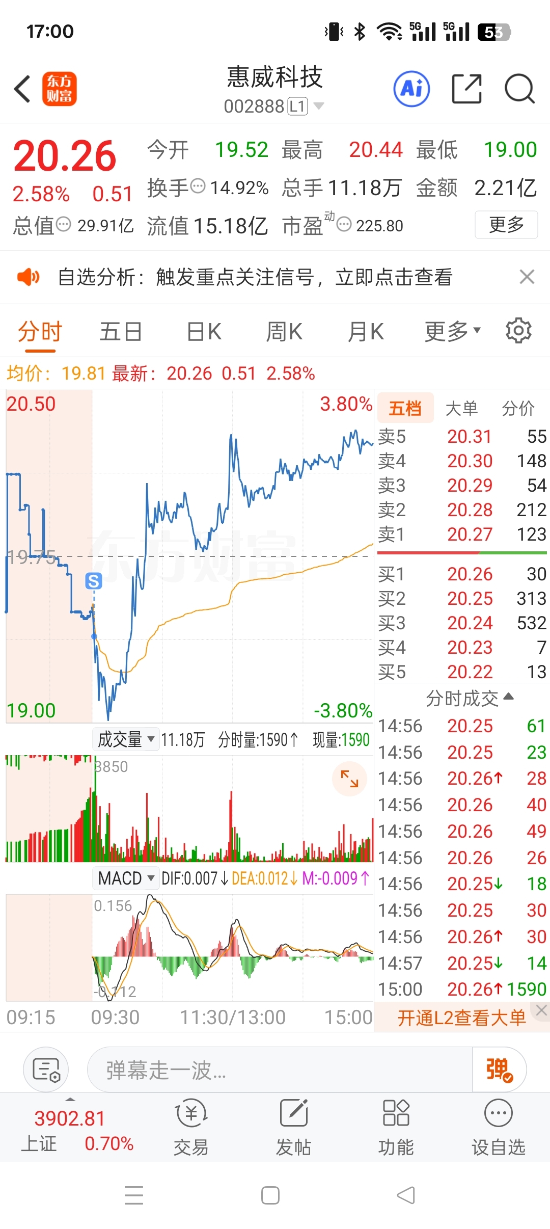 $惠威科技(SZ002888)$ 今天割完就涨了