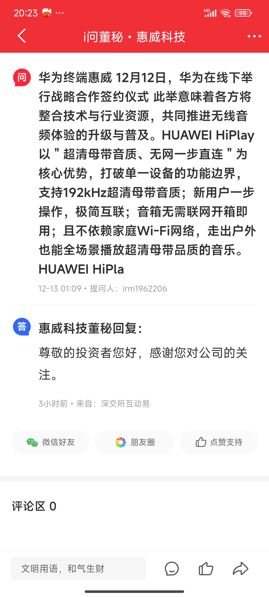 $惠威科技(SZ002888)$ 华为惠威强强联合$漫步者(SZ002351)$ #收盘点评# $奋达科技(SZ002681)$