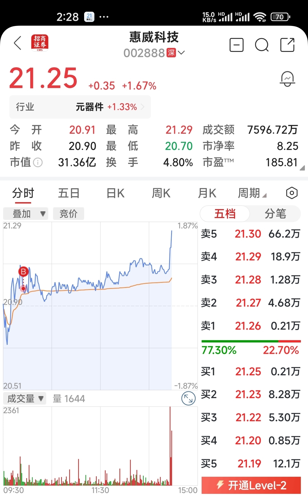 $惠威科技(SZ002888)$ 稳住稳住啊!今天刚进去