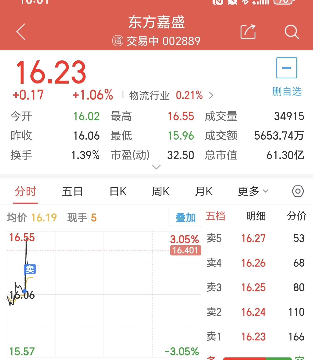 $东方嘉盛(SZ002889)$ 太精准了吧!卖了就拉。