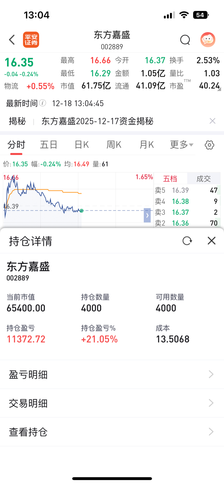 $东方嘉盛(SZ002889)$ 还有一点底仓