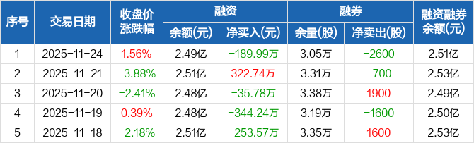 中宠股份:融资净偿还189.99万元,融资余额2.49亿元(11-24)