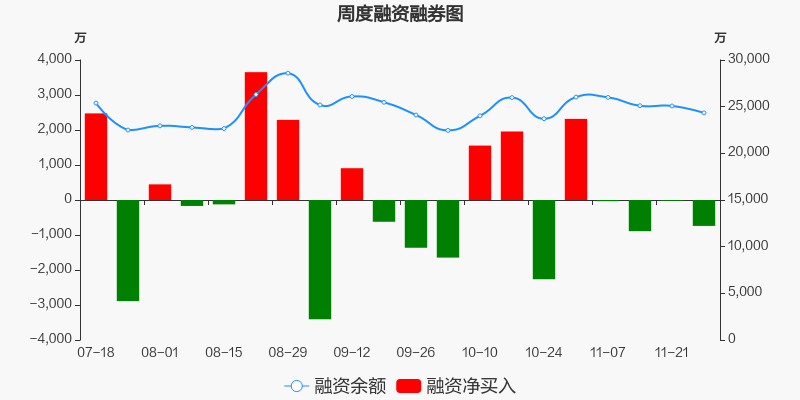 中宠股份本周(2025/11/24-2025/11/28)累计涨幅达2.51%,截至11月28日最新股价报收56.37元。从增量上来看,11月24日至11月27日融资买入交易规模4500.14万元,融资偿还规模5240.34万元,期内融资净偿还740.2万元。从存量上来看,截止11月30日,中宠股份融资融券余额2.45亿元,其中融资余额规模2.43亿元,融券余额规模138.57万元。