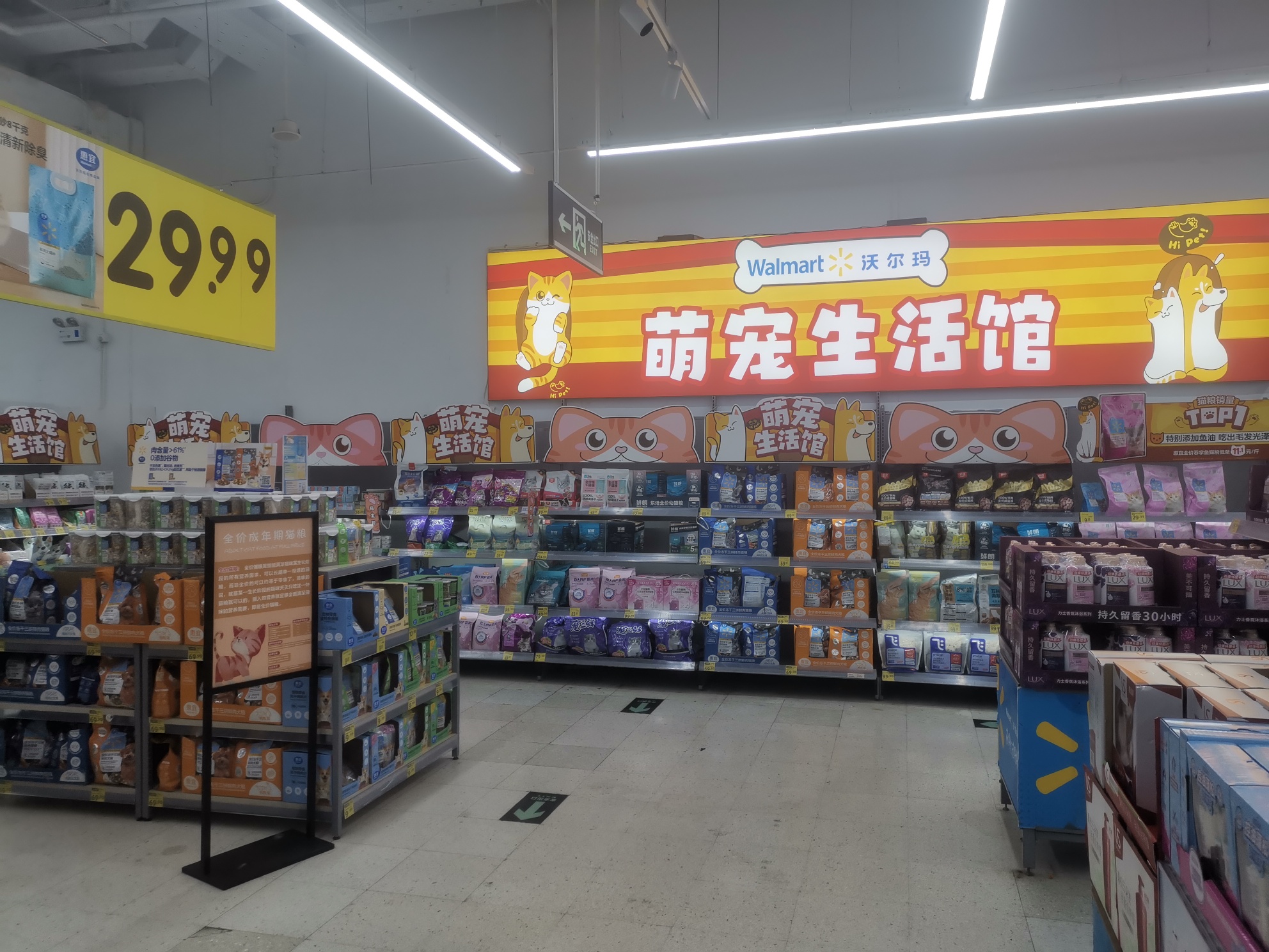 这个是在沃尔玛上海南浦大桥店的专区,以前是没有的。除了猫粮狗粮,还有不少除臭的产