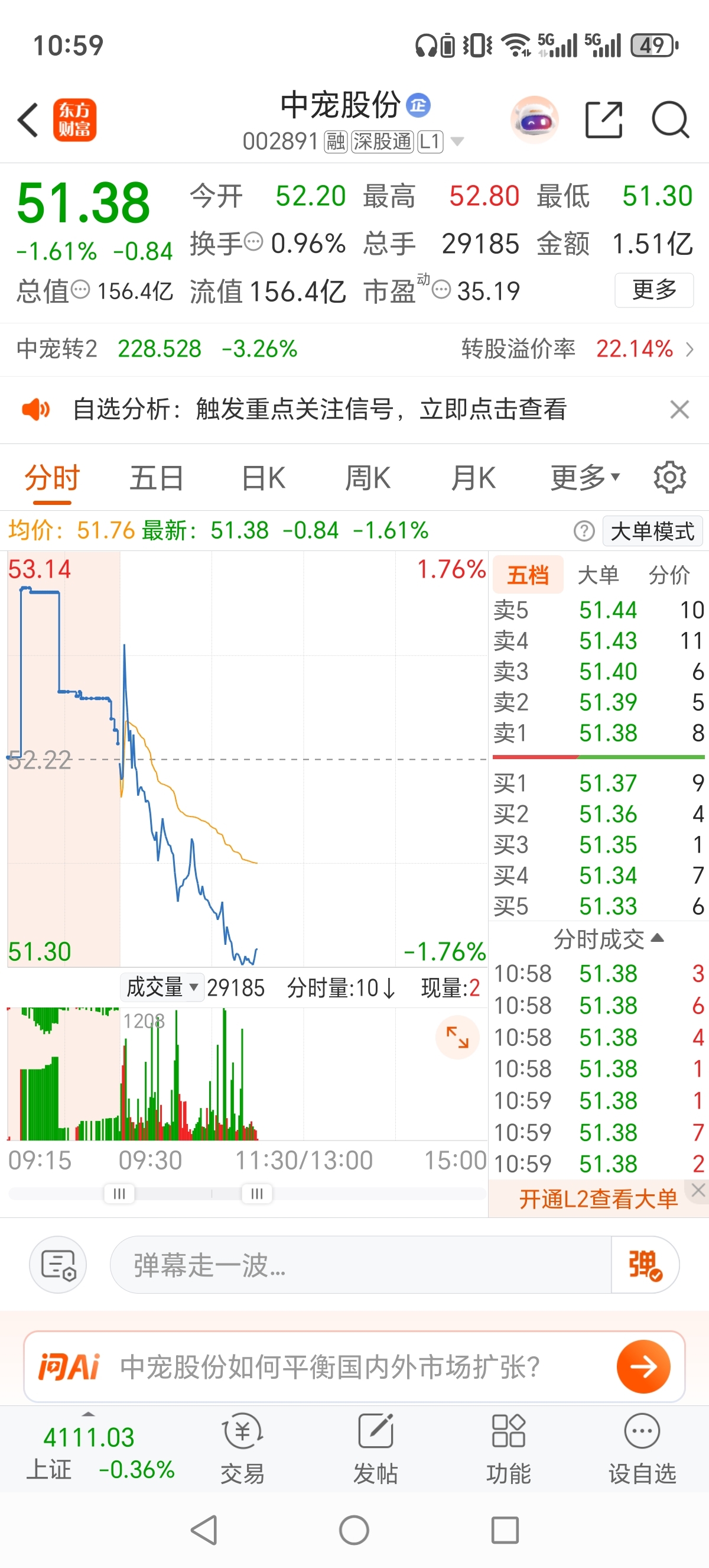 $中宠股份(SZ002891)$ 都是放量卖盘,看来很多大哥都不看好,