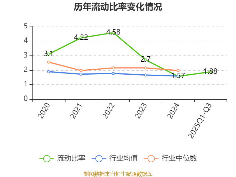 2025年前三季度,公司流动比率为1.88,速动比率为1.46。