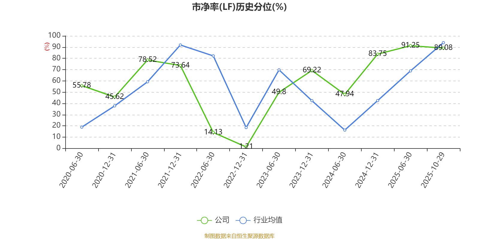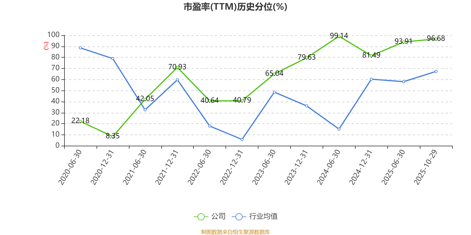 市盈率、市净率为负时,不显示当期分位数,会导致折线图中断。