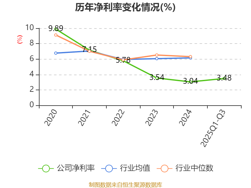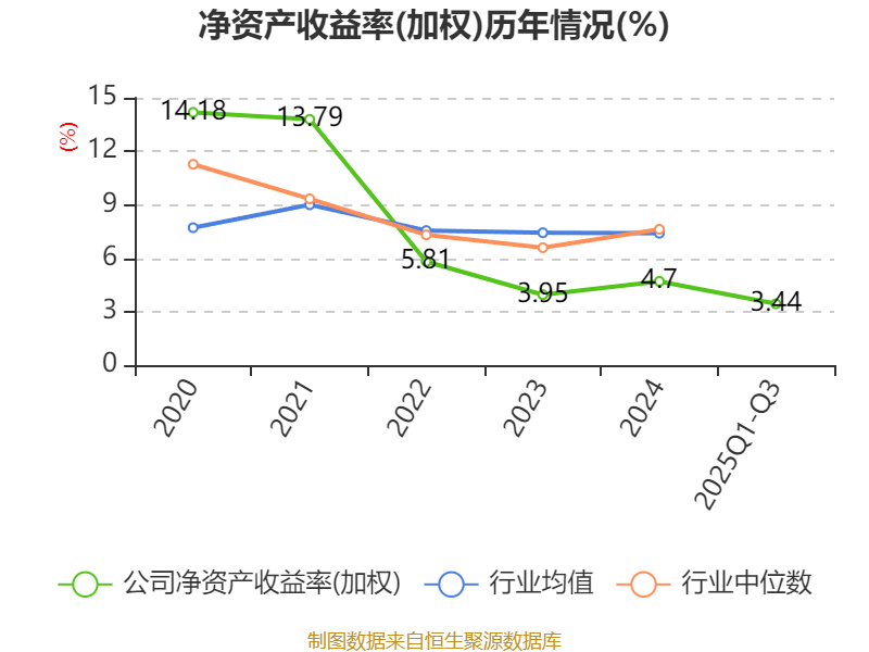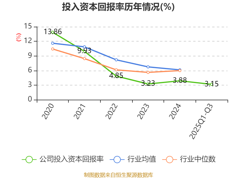 盈利能力方面, 2025年前三季度公司加权平均净资产收益率为3.44%,同比下降1.88个百分点。公司2025年前三季度投入资本回报率为3.15%,较上年同期下降1.35个百分点。