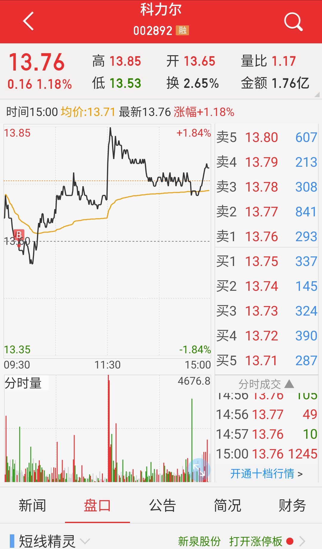 $科力尔(SZ002892)$ 今天进了科力尔,这货打算多拿了几天。