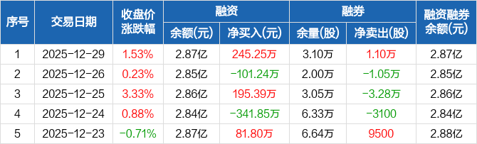 科力尔:融资净买入245.25万元,融资余额2.87亿元(12-29)