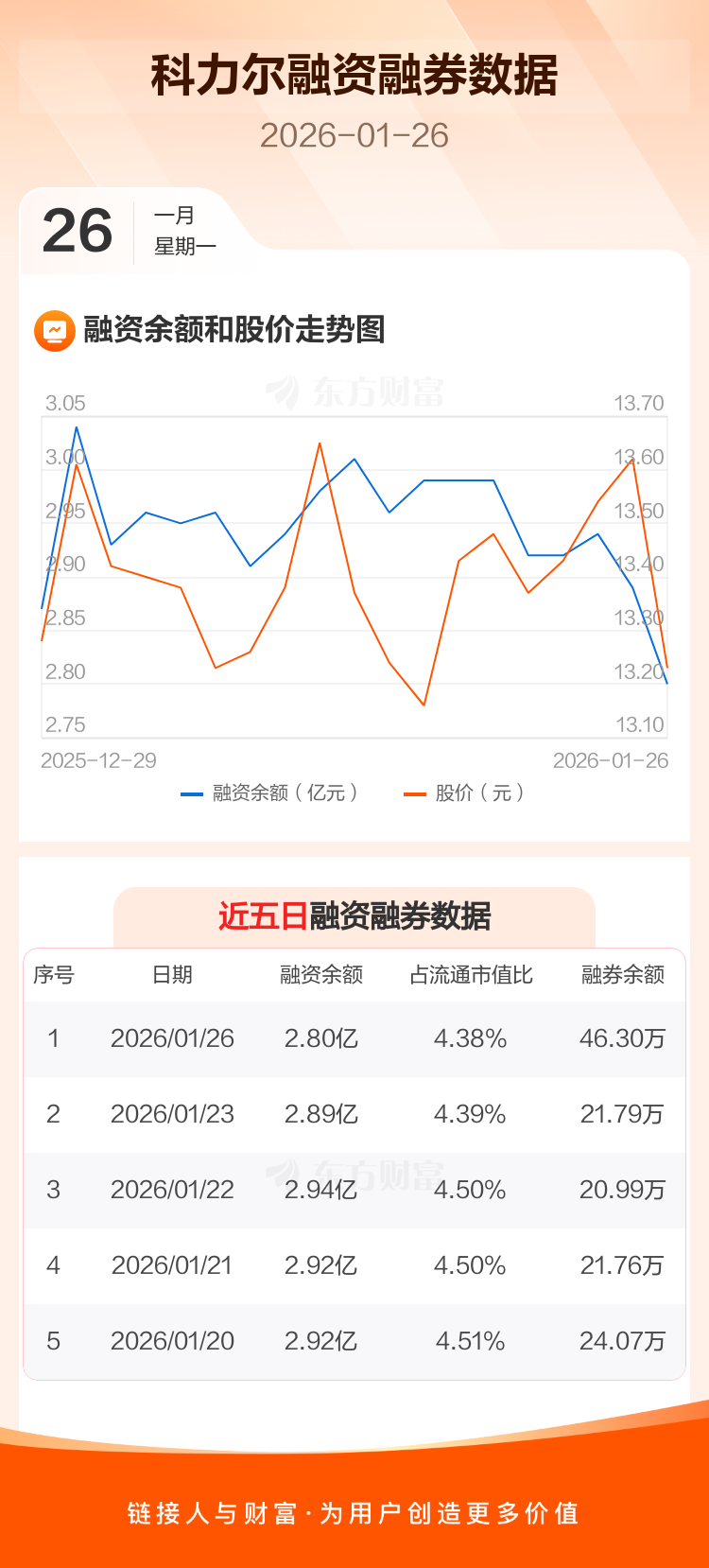 交易所最新数据显示,科力尔于2026年1月26日获融资买入2065.67万元,融资偿还2914.95万元,当日融资净偿还849.28万元。目前,该股融资余额2.80亿,占流通市值比例为4.38%。