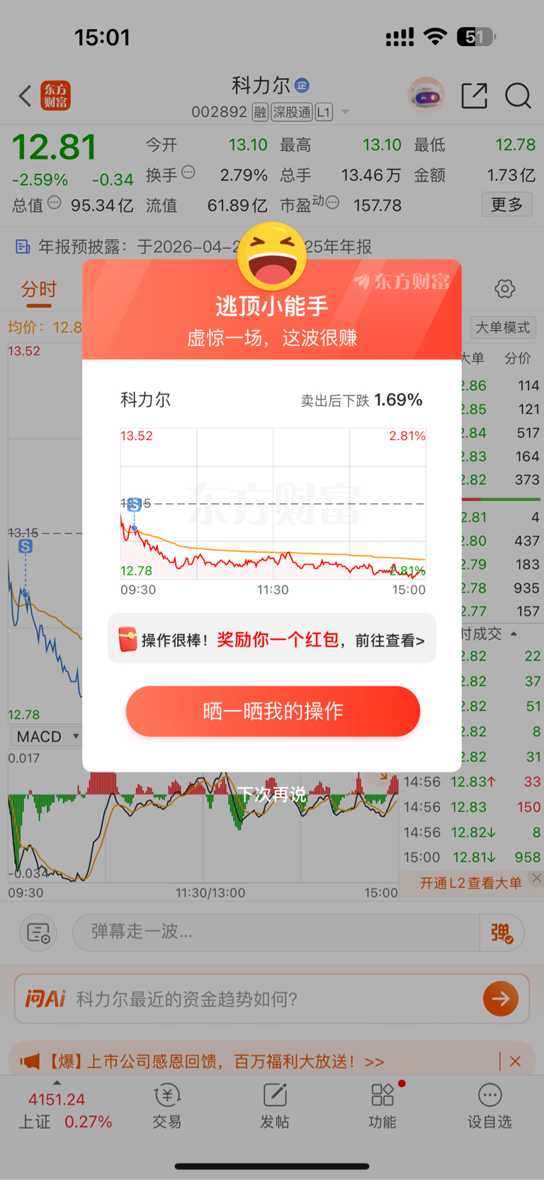 $科力尔(SZ002892)$ 把你卖对了,付不起的阿斗