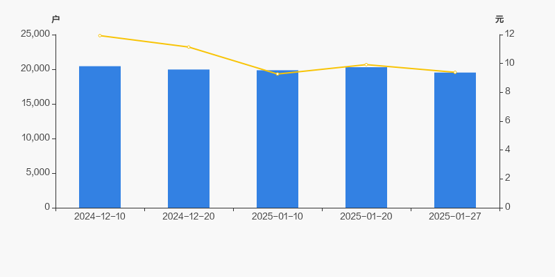 截至2025年1月27日,公司最新总股本为2.64亿股,其中流通股本为2.03亿股。户均持有流通股数量由上期的9991股上升至1.04万股,户均流通市值9.75万元。