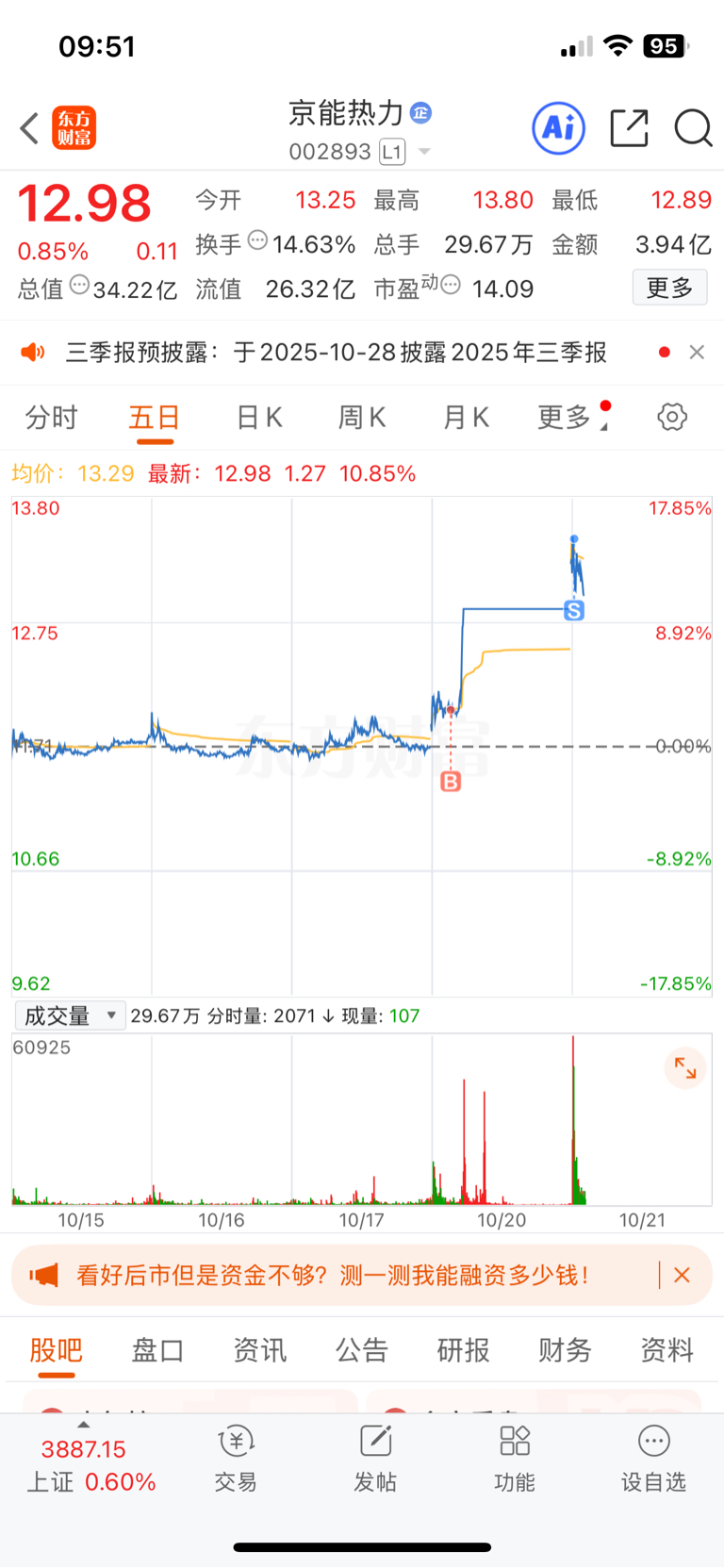 $京能热力(SZ002893)$ 昨天那么牛,就一日游?我是醉了,祝留下的发财